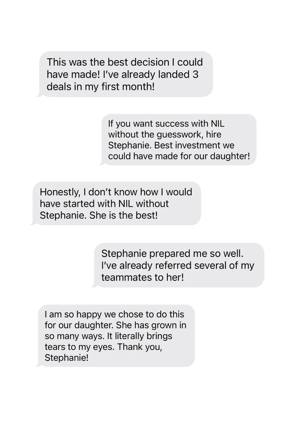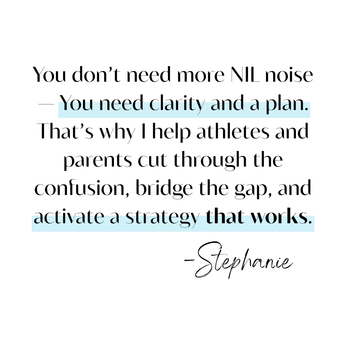 Great! Simply book a free 15-minute NIL Game Plan Call so you can speak with Stephanie and talk through your options. TAP HERE to choose a day and time that works for you.